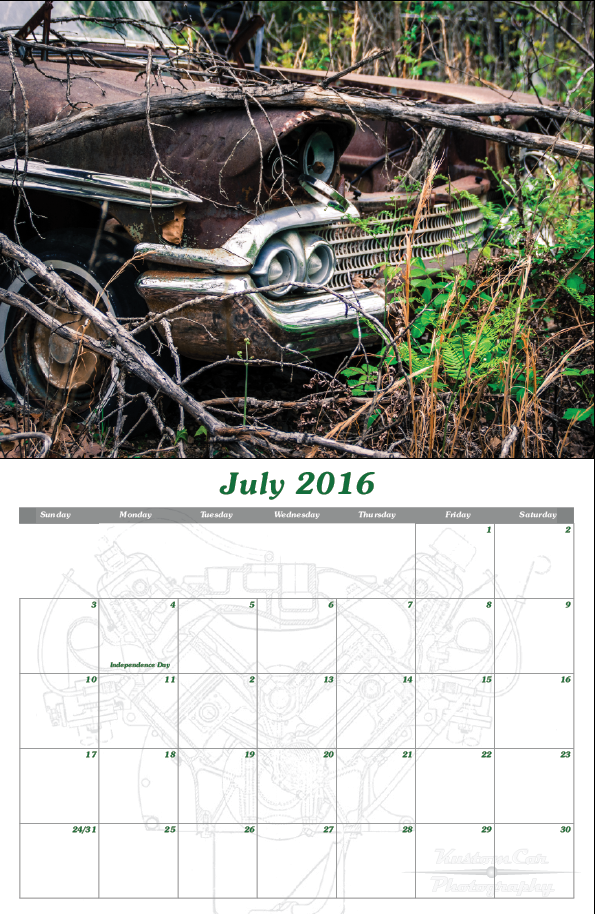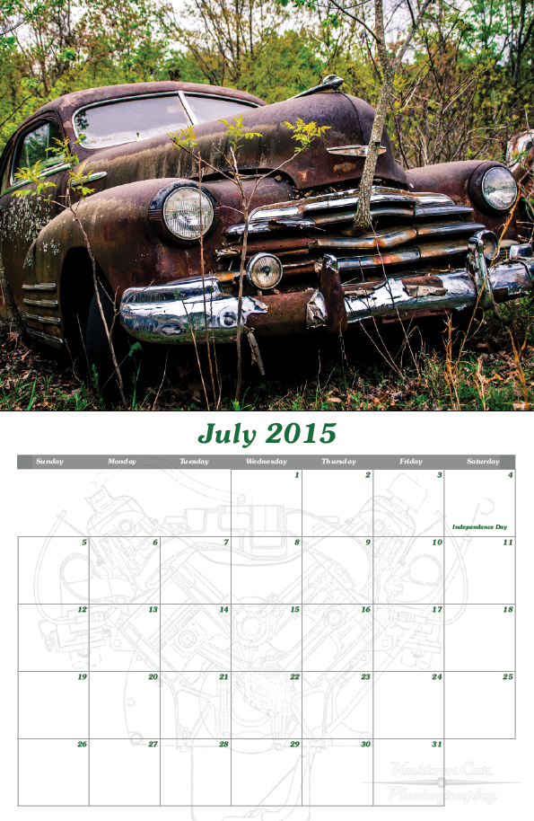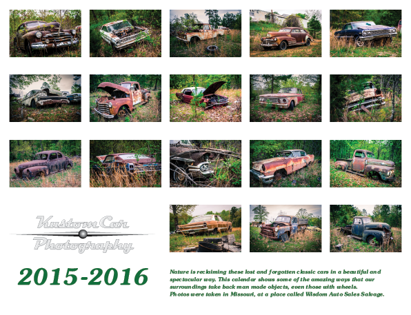 This 18 month calendar is a collection of classic cars decaying in peace in junk yards.